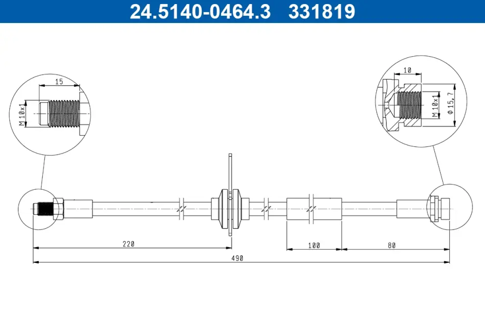 Гальмівний шланг гнучкий (довжина 490мм, M10x1) FORD KUGA II 1.5-2.5 10.12-