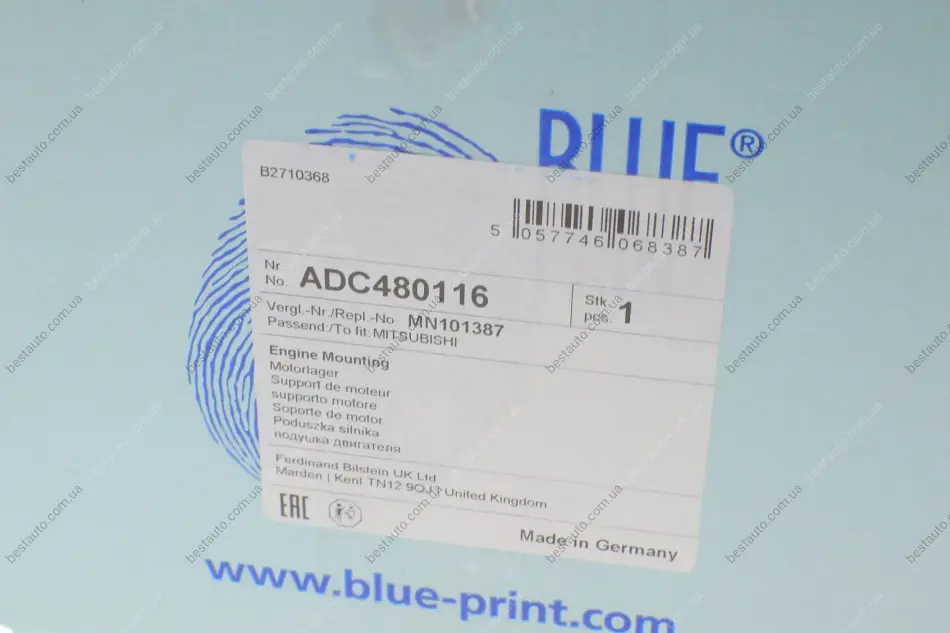 Подушка двигателя (задняя) Mitsubishi Lancer VIII 1.5-2.0 06-/ASX 1.6-2.0 09- BLUE PRINT ADC480116