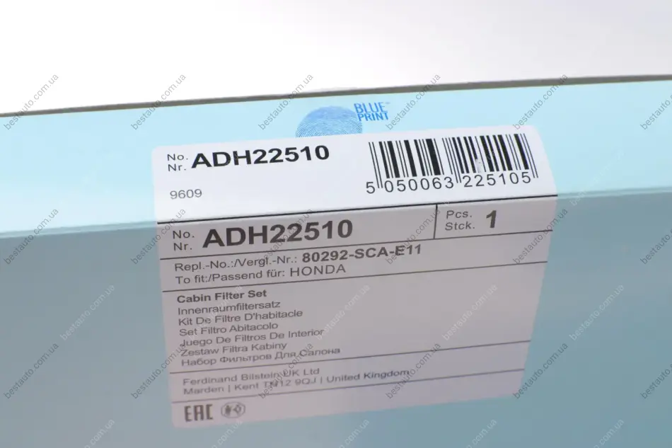 Фильтр салона Honda Civic 1.3-2.0 01-13/CR-V 01-07 (к-кт 2 шт.).) BLUE PRINT ADH22510