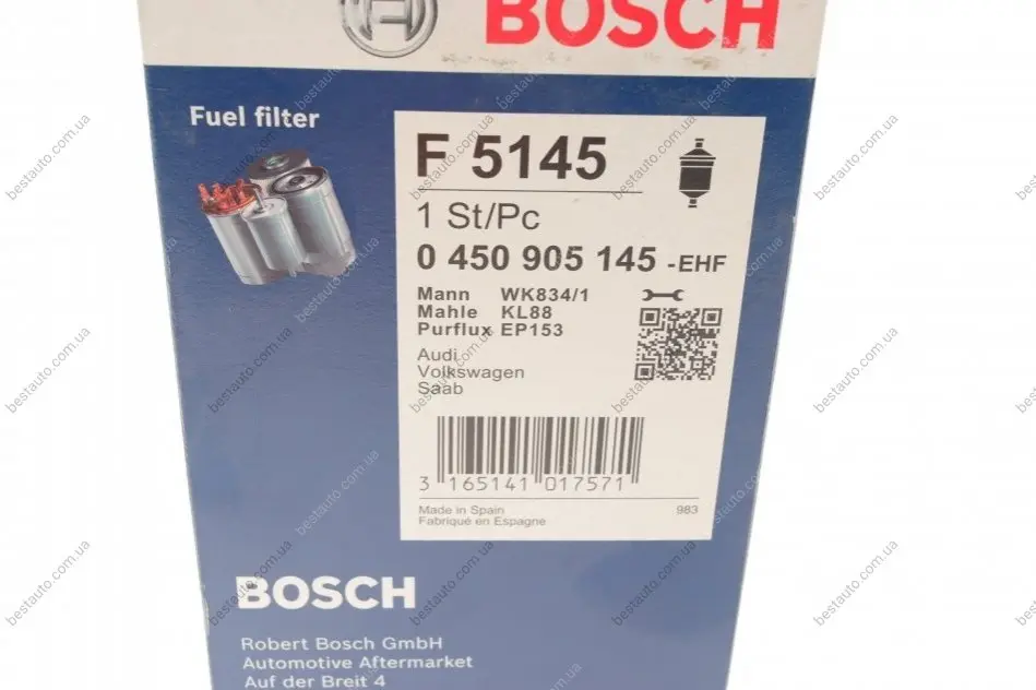 Фильтр топливный Audi 80/100/A6 1.8-2.3 86-94 (замена для 0 450 905 137) BOSCH 0 450 905 145