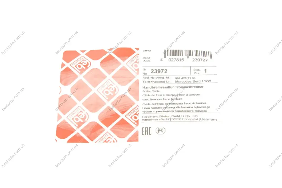 Трос ручника (центральний) MB Sprinter 208-316 96- (середня база) (1990/285 мм) FEBI BILSTEIN 23972