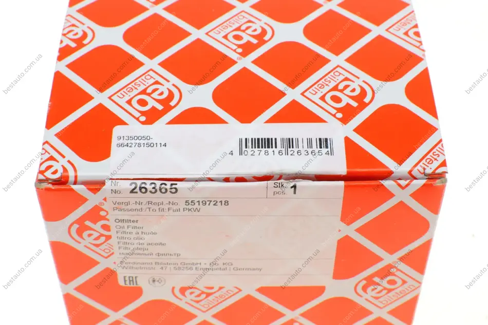 Фильтр масляный Fiat Doblo 00-/Fiorino 07-/Punto 1.3JTD 05-/Opel Astra H/J 04-15/Combo 1.3CDTI 01-11 FEBI BILSTEIN 26365