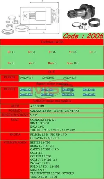 Бендикс стартера GHIBAUDI 2006