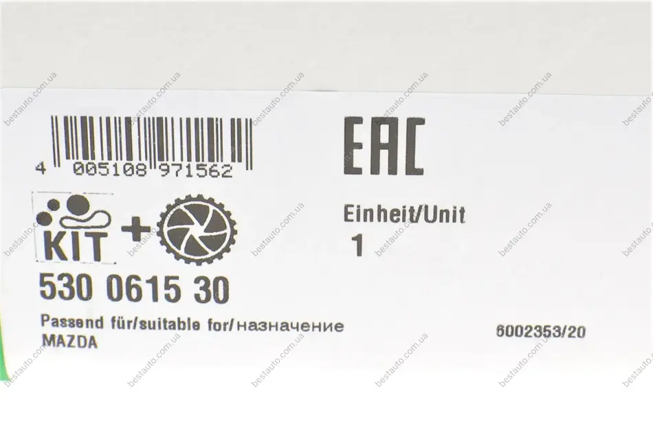 Комплект ГРМ + помпа Mazda 2 1.4 CD 03-15 (144х25.4) INA 530 0615 30