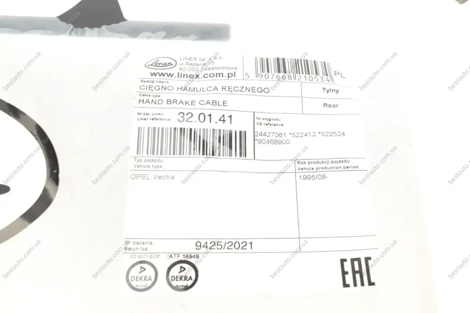 Трос ручника (задний) Opel Vectra B 1.6-2.6i V6 95- (1455/1226+1455/1226) LINEX 32.01.41