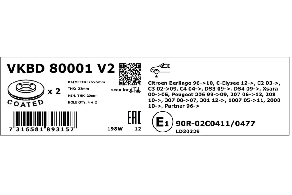 - - Peugeot: 2008, 206, 207, 208, 307, Partner