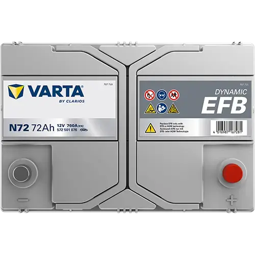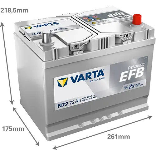 Акумулятор VARTA 12В 72Агод./760А (EN) Dynamic EFB START&STOP EFB (R+) 261x175x220 B01 - монтажний фланець 10.5мм