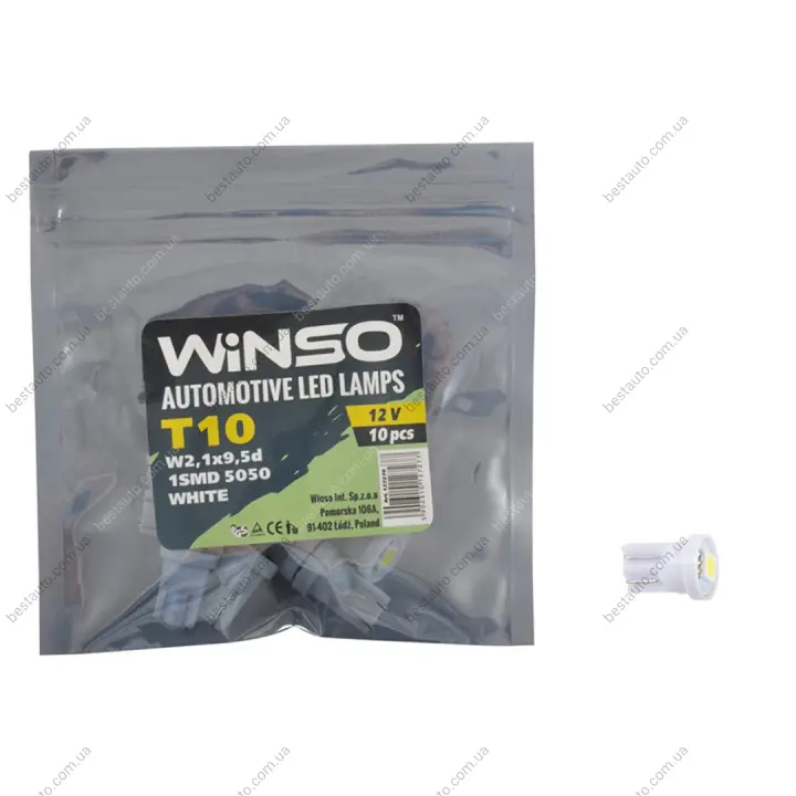 12V SMD T10 W2.1x9.5d 1LED 5050 white 10шт.уп.