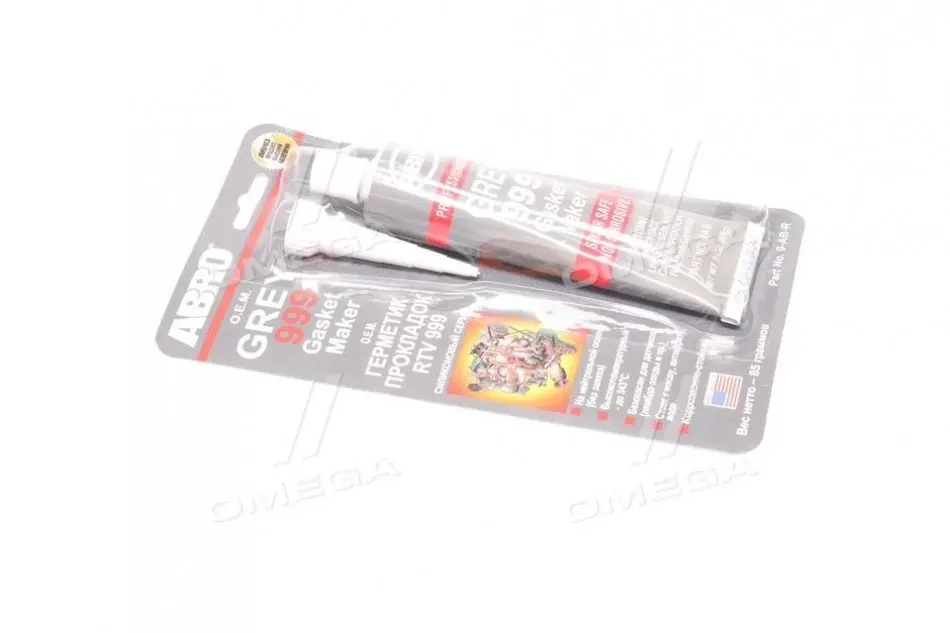 ABRO 85 гр. Призначений для ремонту та заміни багатьох прокладок, що зустрічаються в автомобілі. Легко набуває будь-якої форми. Не стискується та не розтягується під впливом температур. Протистоїть дії води, олії, антифризу та трансмісійної рідини. Витримує температуру до 320 С. Застосовується для ремонту іномарок. Піддон картера витримує тиск значно більший, ніж на червоному та чорному герметиках.