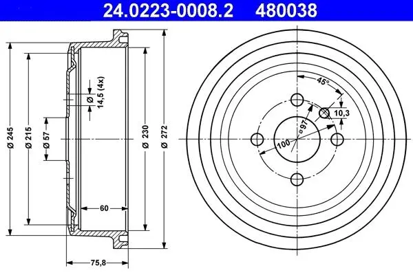 Наружный диаметр тормозного барабана [мм]: 230