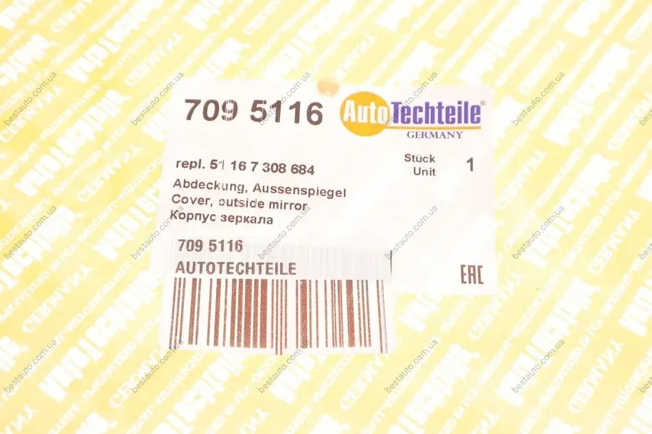 Корпус дзеркала заднього виду BMW 5 (F10)/7 (F01/F02/F03/F04) 11-16 (R) AUTOTECHTEILE 709 5116