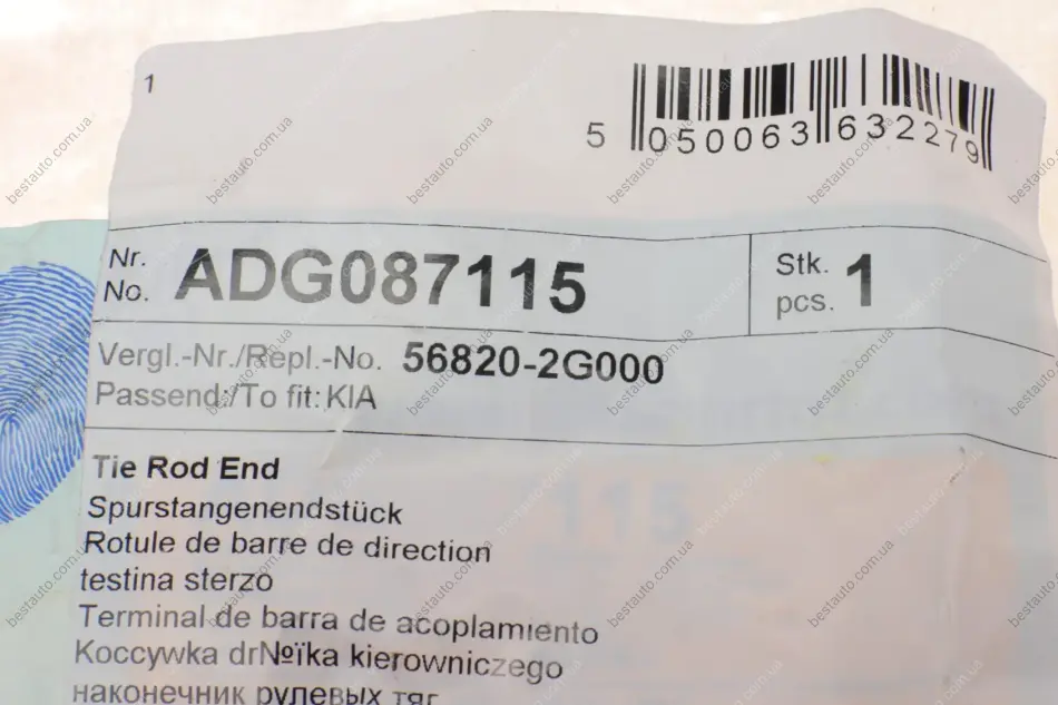 Наконечник тяги рульової (L) KIA Carens III 1.6-2.0 06-13/Optima II 2.0-2.4 05-10 (L=223mm) BLUE PRINT ADG087115