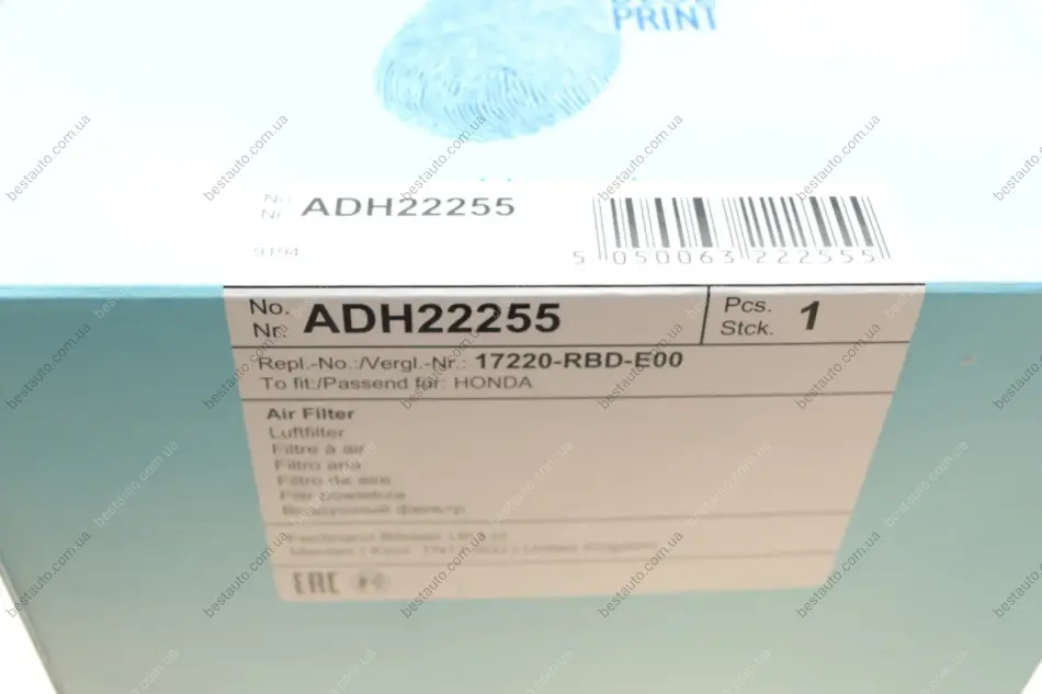 Фільтр повітряний Honda Accord VII 2.2i-CTDI 04-08 BLUE PRINT ADH22255