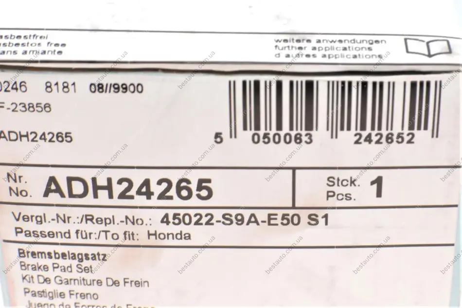 Колодки гальмівні (передні) Honda CR-V 2.0/2.4 16V 01-12 BLUE PRINT ADH24265