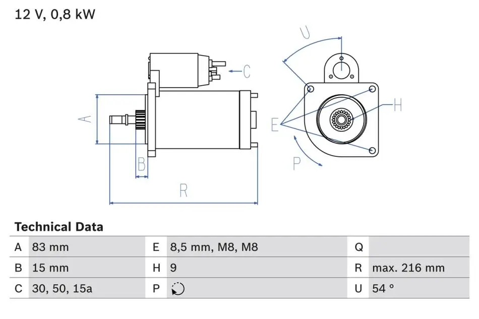 - Потужність стартера [кВт]