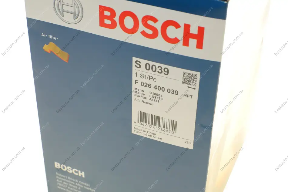 Фільтр повітряний Alfa Romeo 159/Brera/Spider 1.8-3.2 i/1.9-2.4JTDM 06-11 BOSCH F 026 400 039