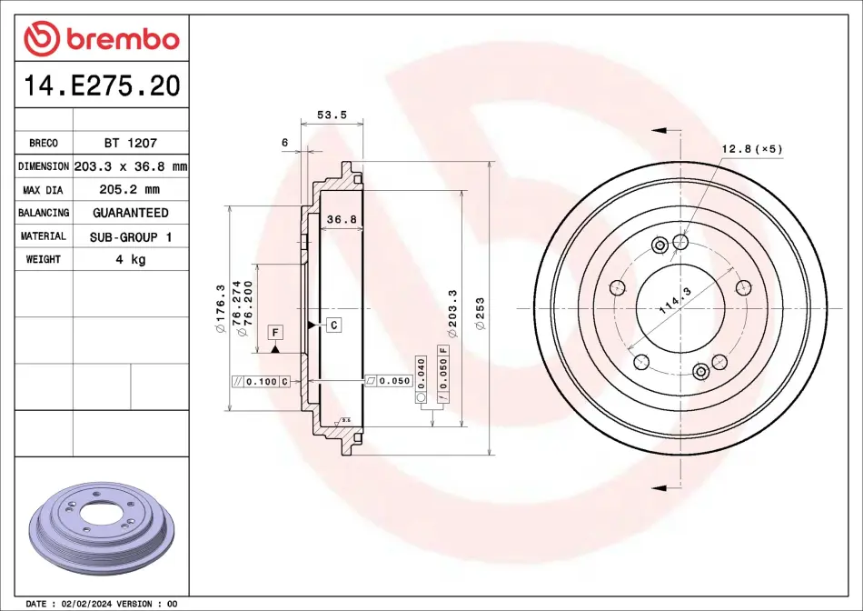 Наружный диаметр тормозного барабана [мм]: 253
