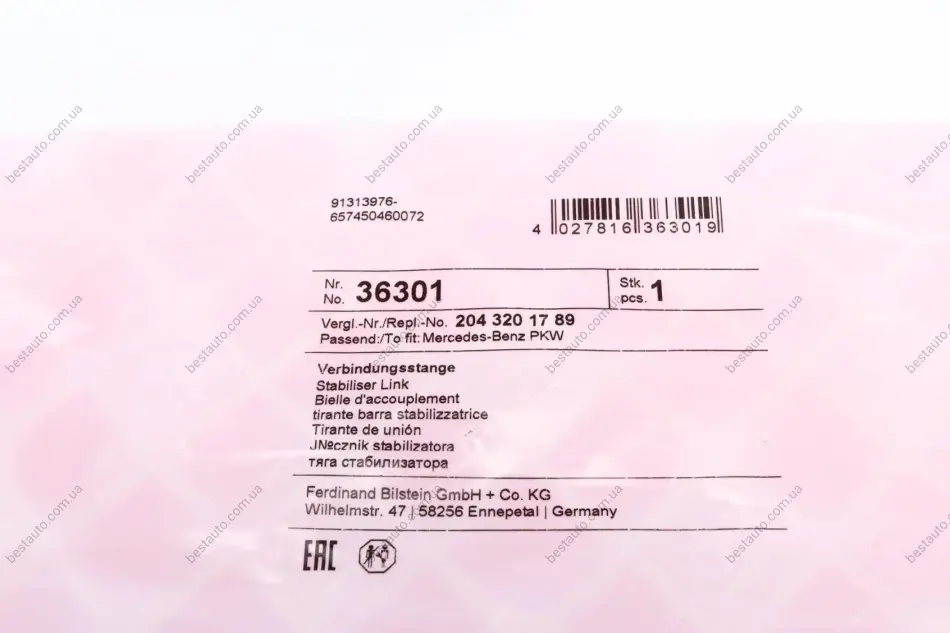 Тяга стабілізатора (переднього) (L) MB C-class (W204)/E-class (C207) 07- (L=306,65mm) FEBI BILSTEIN 36301