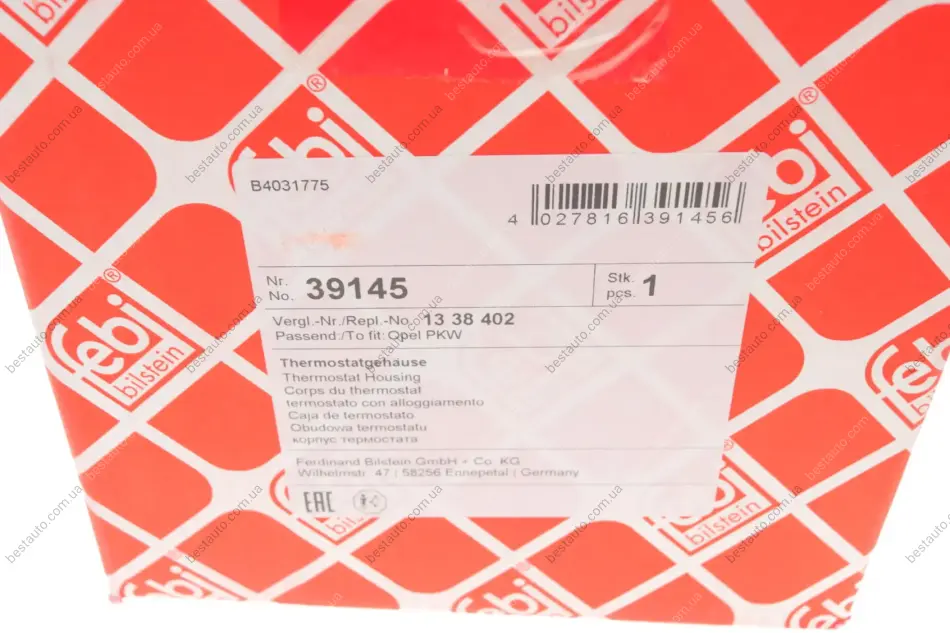 Термостат Opel Astra/Vectra 1.6/1.8 00- (105°) (з корпусом) FEBI BILSTEIN 39145