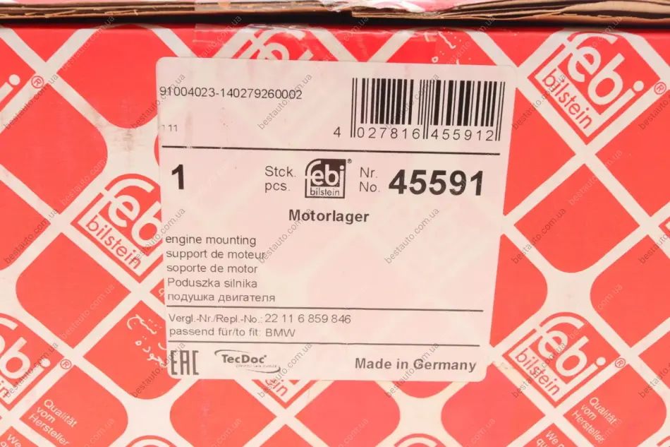 Подушка двигуна (R) BMW 5 (F10)/6 (F12/F13) 3.0i xDrive 10-18 FEBI BILSTEIN 45591