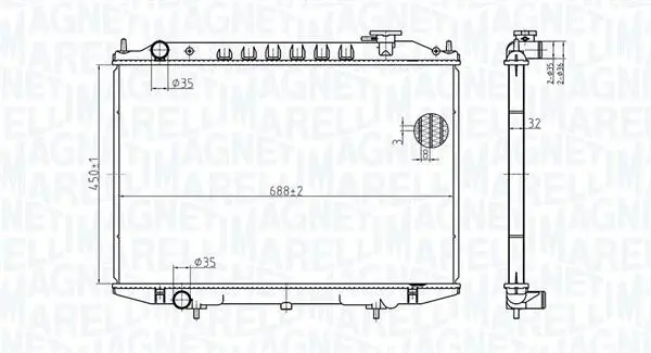 MAGNETI MARELLI NISSAN Радіатор охолодження NAVARA 2.5 01-, PICK UP 2.5 02-