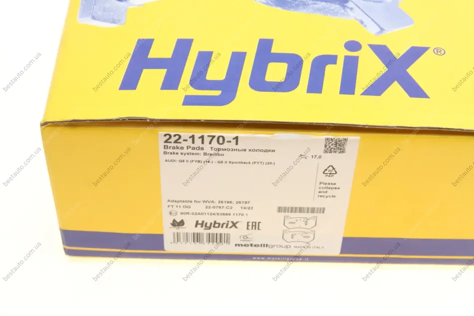 Колодки гальмівні (передні) Audi Q5 18- METELLI 22-1170-1
