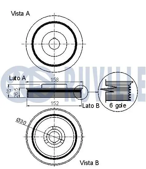 RUVILLE FIAT Шкив коленчатого вала Scudo 99-,Citroen Berlingo,C5/8,Jumpy,Peugeot 206/807,Expert