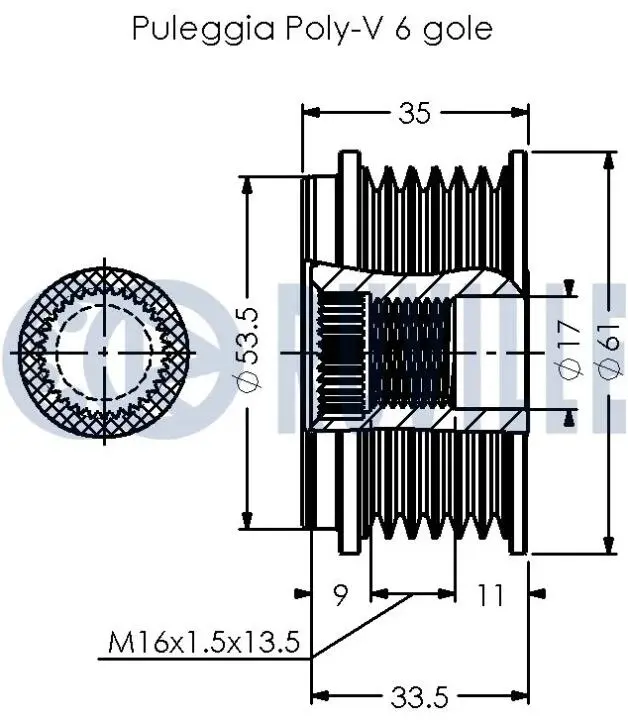 Шків генератора VW Caddy IV 2.0TDI 15-/Crafter 2.0TDI 11-16, 6PK