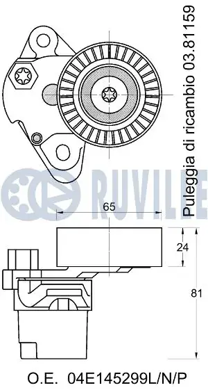 RUVILLE SKODA Ролик ремня поликлинового FABIA III, OCTAVIA III, AUDI A1, A3