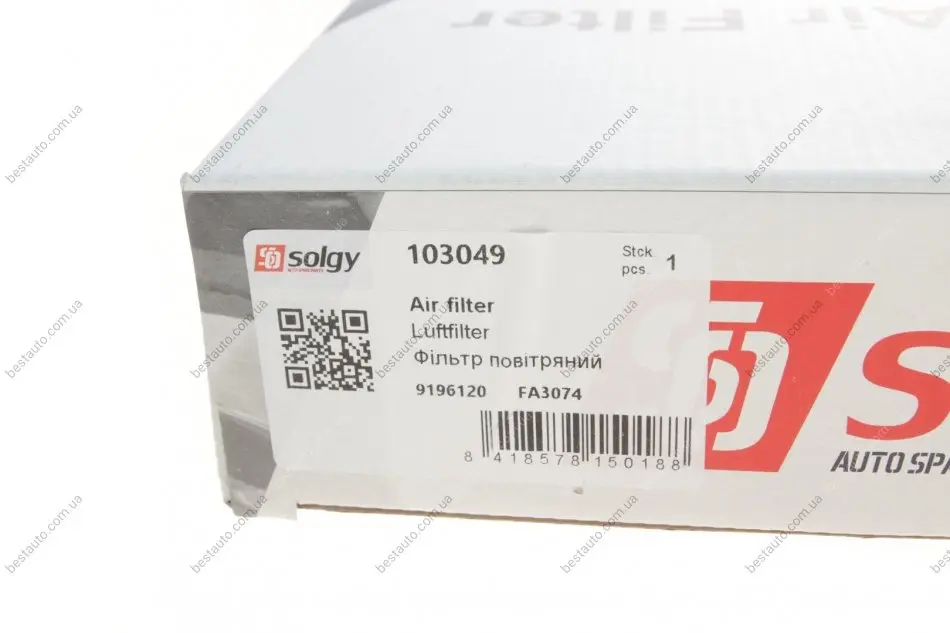 Фільтр повітряний Opel Combo 1.7D 01- (з поролоном) SOLGY 103049