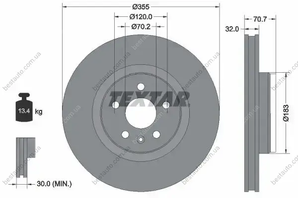 Диск гальмівний (передній) Tesla Model S/X 16- (355х32) PRO+ TEXTAR 92313905