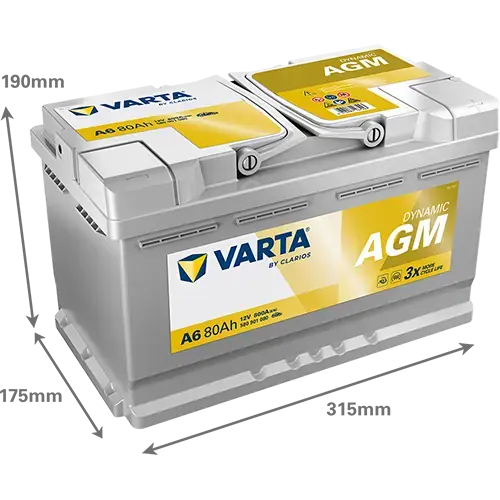 Акумулятор VARTA 12В 80Агод./800А (EN) Dynamic AGM START&STOP AGM (R+) 315x175x190 B13 - монтажний фланець 10.5мм