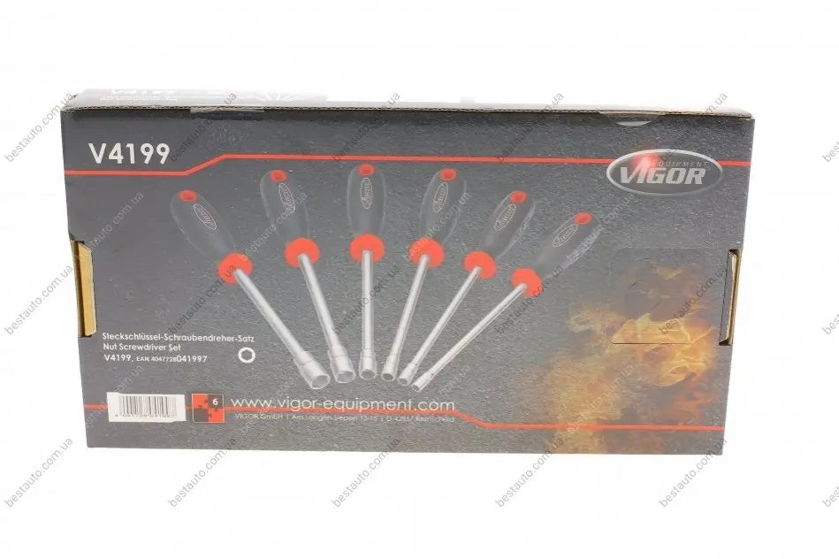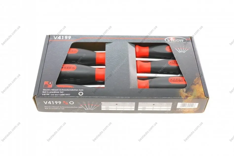Набір викруток з 6-гранними головками (6шт) (6/7/8/10/12/13) VIGOR V4199